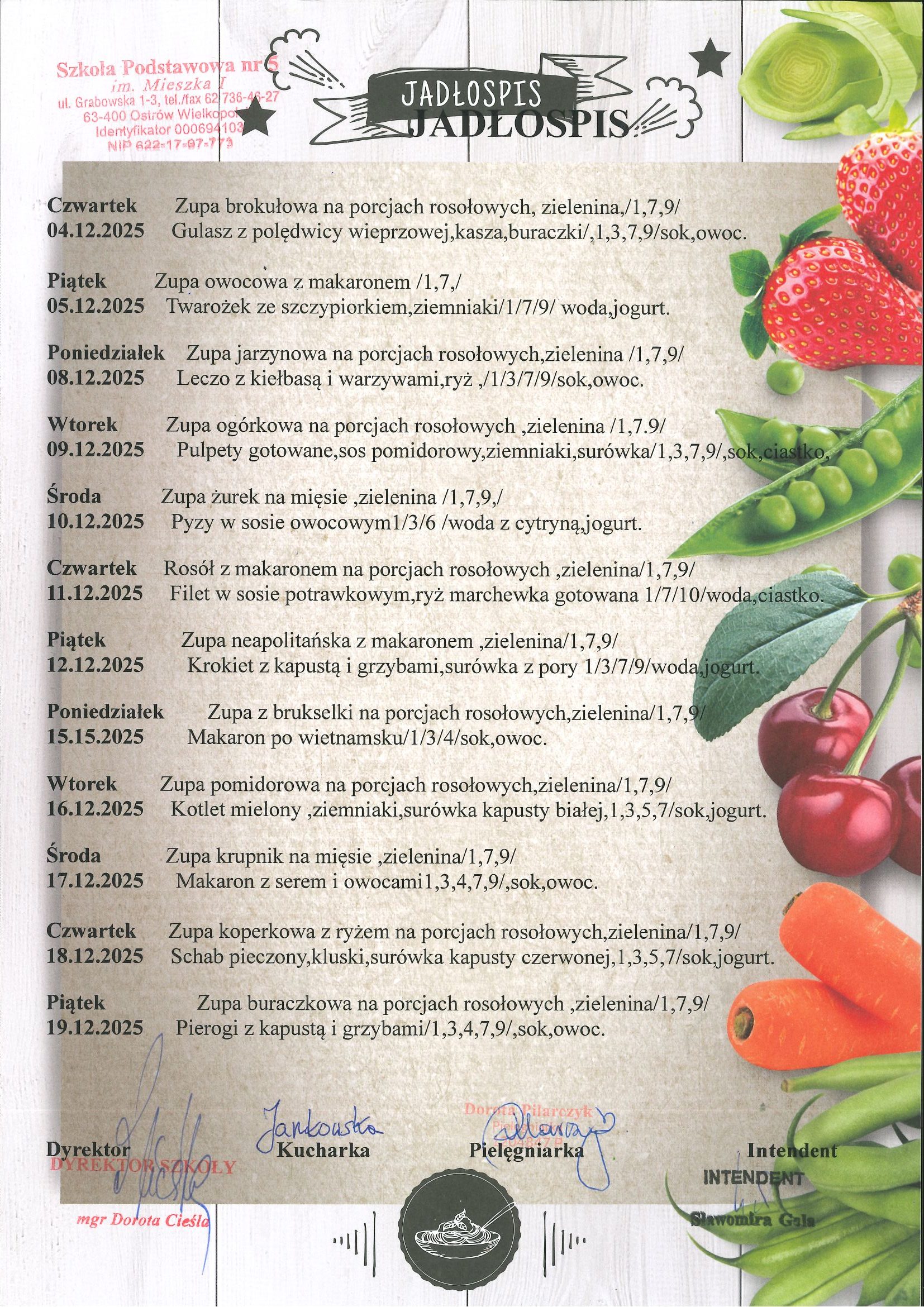 Prosimy o zgłaszanie chęci wykupienia jednorazowego obiadu 1 dzień wcześniej do godz. 10.00 mailowo lub telefonicznie